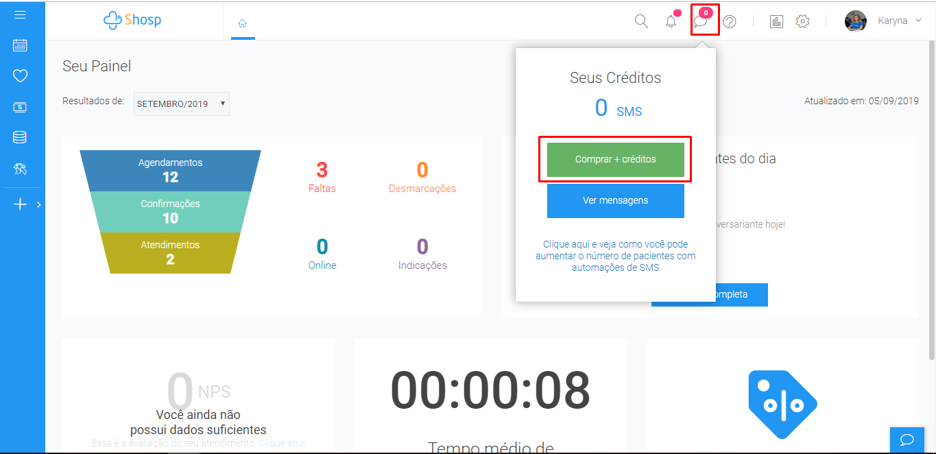 Seu saldo de SMS está chegando ao fim ou acabaram? Não se preocupe! Pelo sistema você consegue realizar a compra de SMS de forma fácil e em poucos cliques e continuar enviando mensagens de confirmação de agendamento, aniversário, pesquisa de satisfação e fidelização.