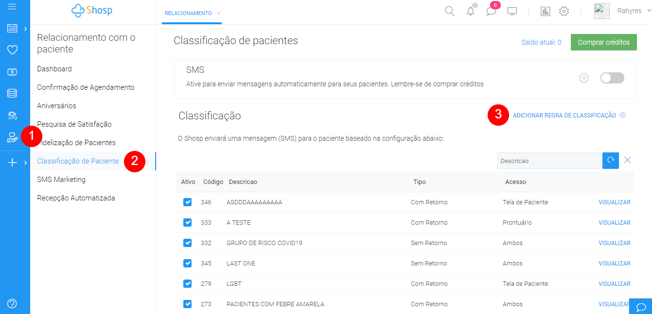 3. Configurar a classificação de pacientes
