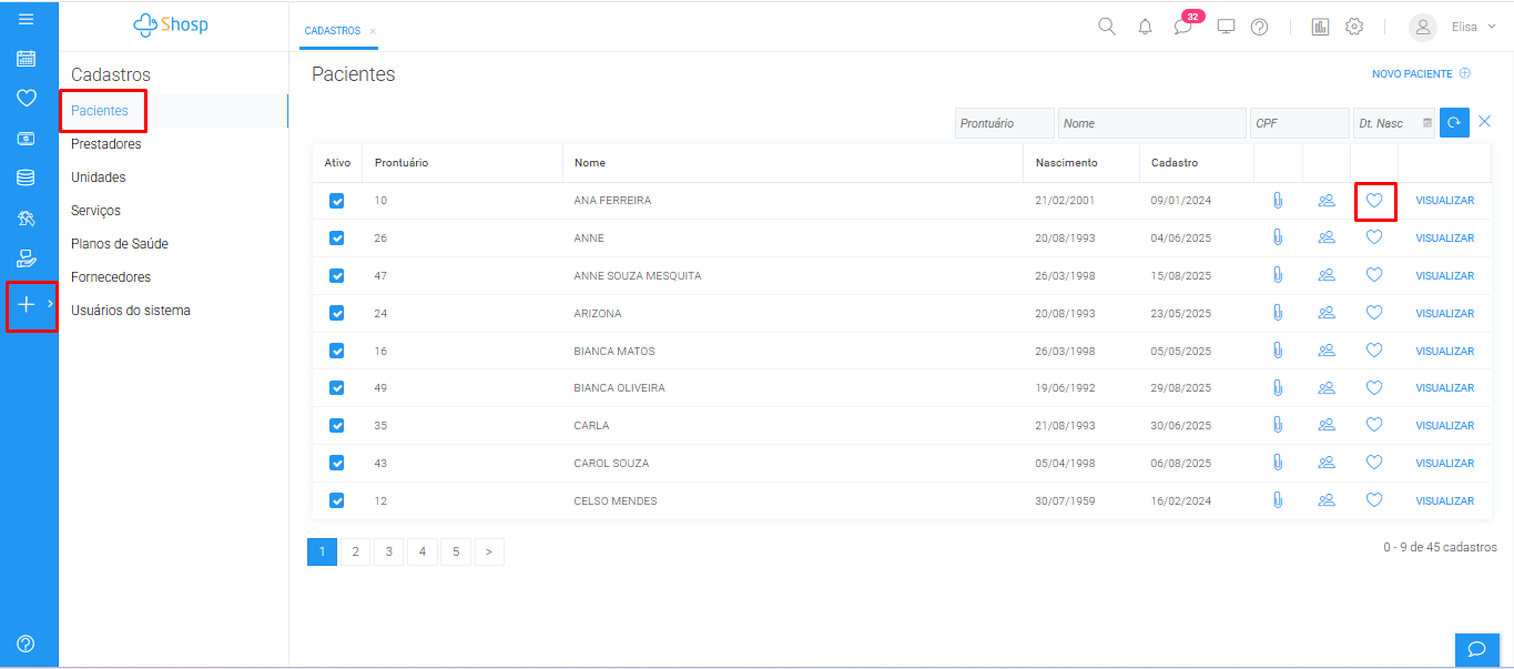 Siga o passo a passo abaixo para acessar o histórico clínico do paciente pelo cadastro: