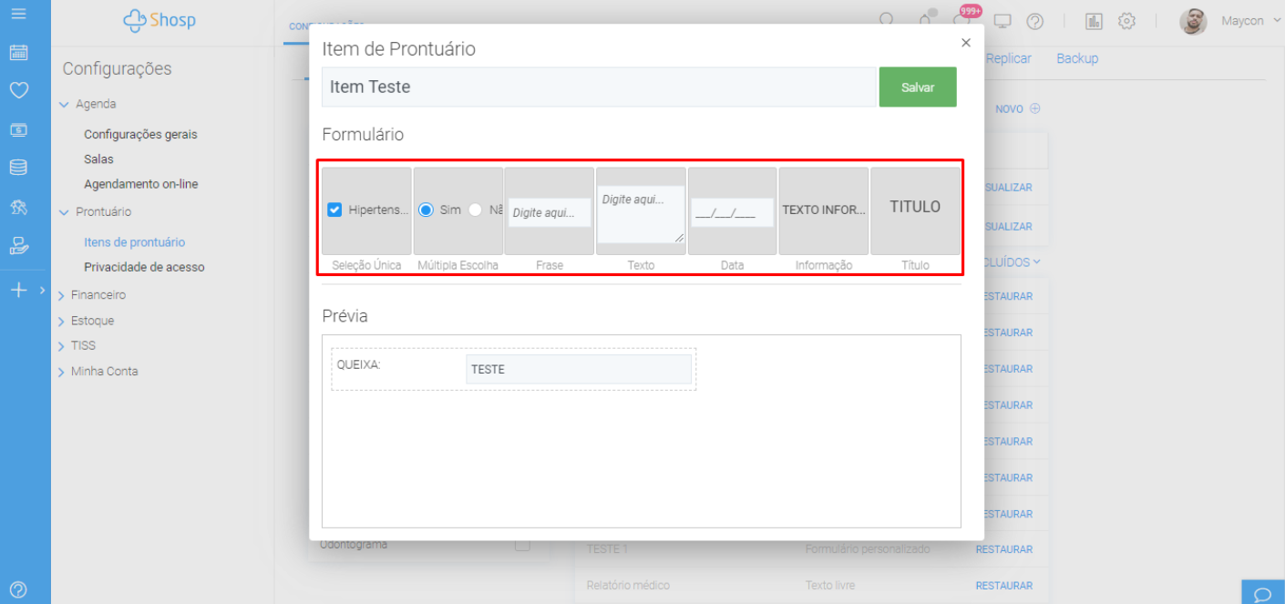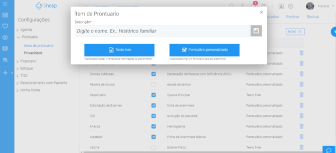 Como criar Itens de Prontuário no SHOSP?