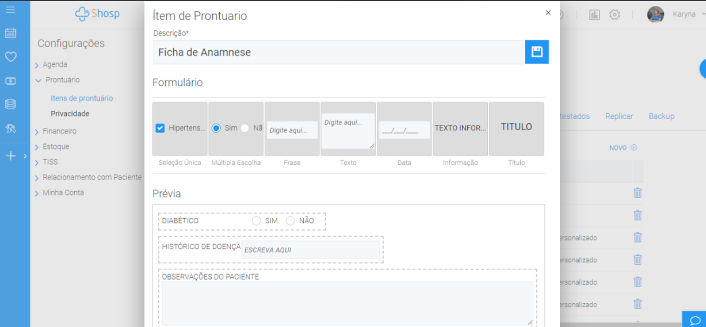 No Shosp, você pode configurar sua ficha de atendimento da forma que quiser, não precisa mudar sua forma de trabalho. Pelo contrário, as fichar de prontuário irão facilitar a rotina de atendimento.