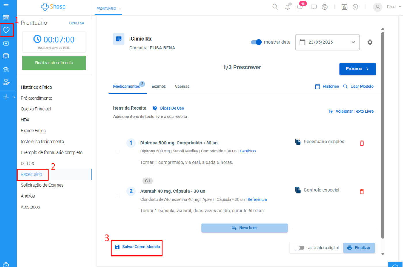 Saiba como armazenar receituários em seu prontuário para poupar tempo durante o atendimento a um paciente com um modelo de receituário.