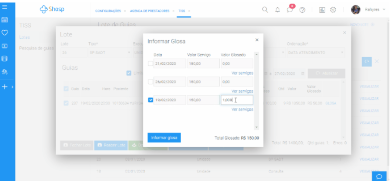 Como informar a glosa no Lote e acompanhar no Repasse Médico no SHOSP