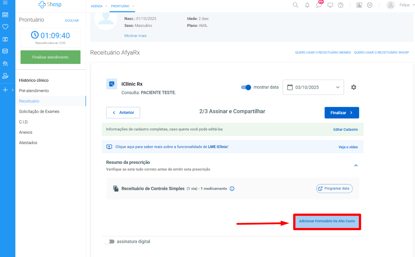Como prescrever com formulário de alto custo (LME) em Afya Rx?