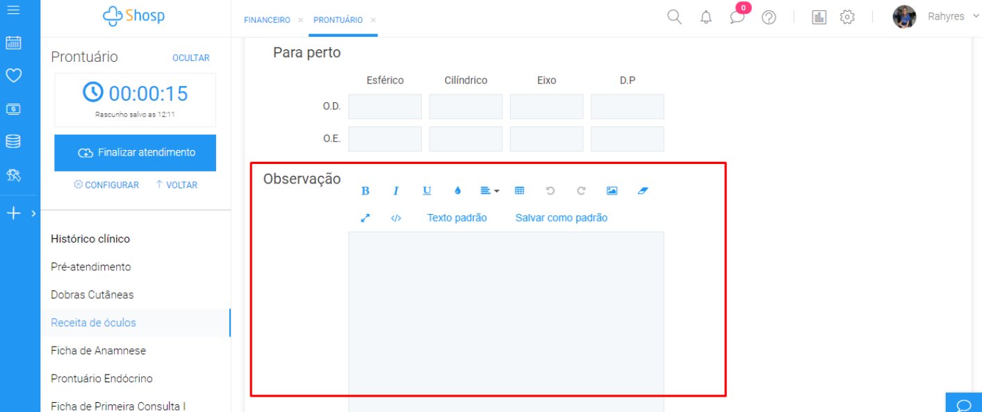 Saiba como utilizar a receita de óculos do seu prontuário.