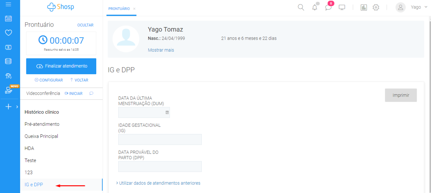 Os protocolos pré-definidos são itens de prontuário disponibilizados pelo Shosp para determinadas especialidades, com campos padrões previamente estabelecidos e em alguns casos com a possiblidade de realizar cálculos de forma automática.