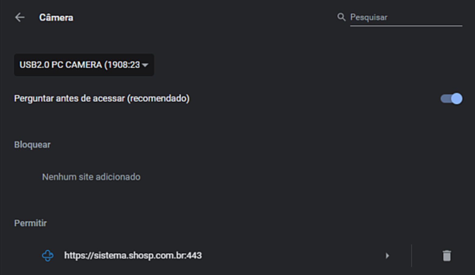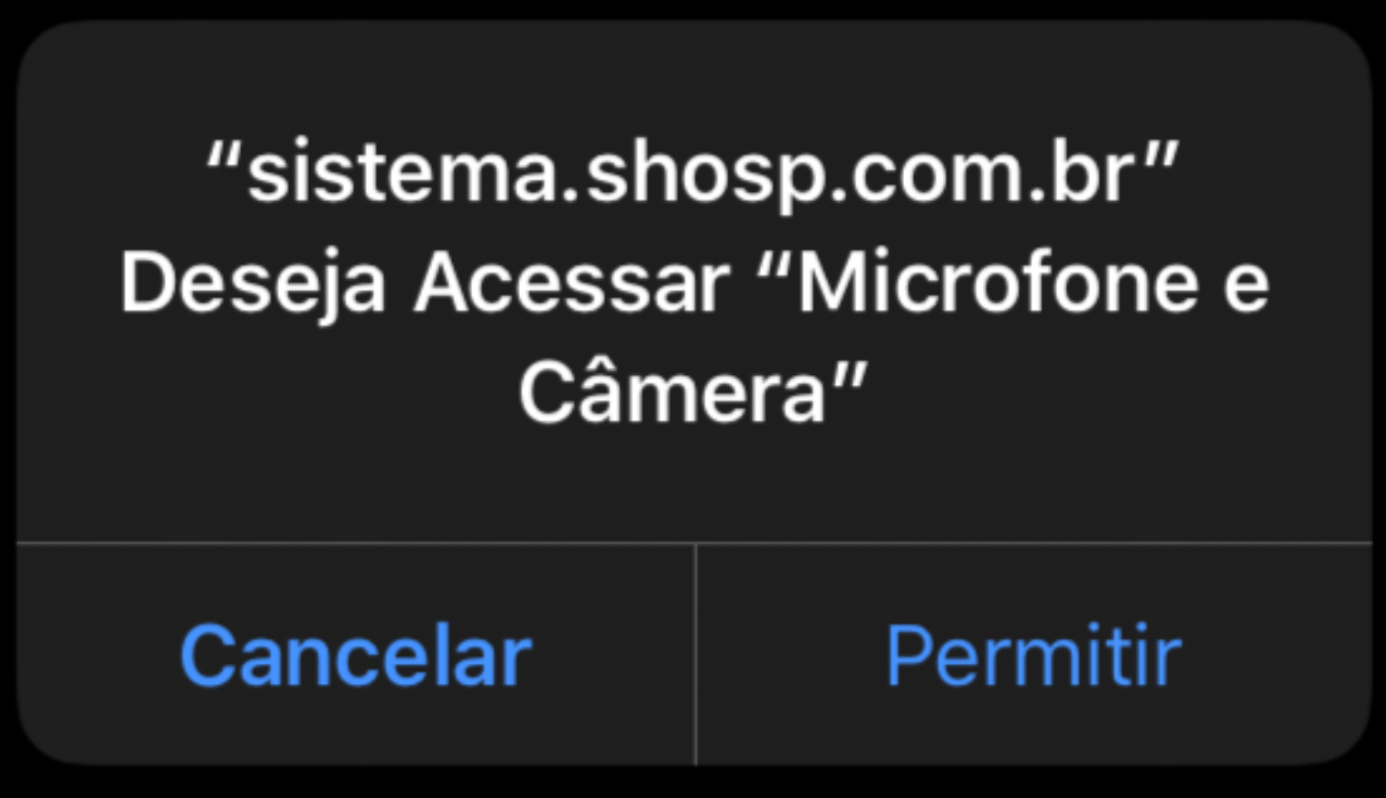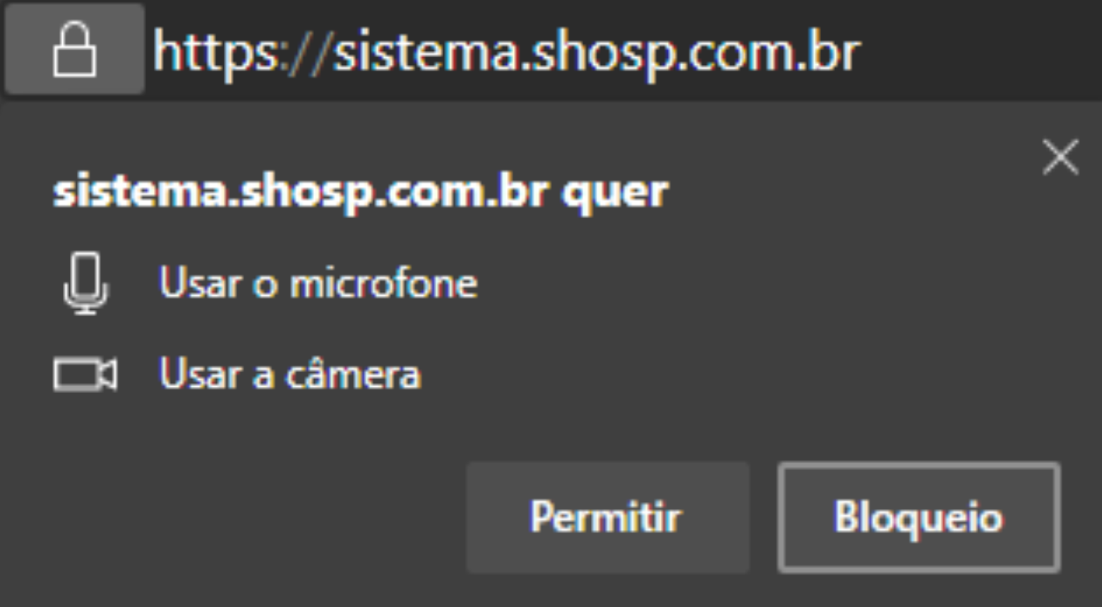A câmera e o microfone são essenciais para realizar a chamada. Assim que o sistema requer o uso deles, o navegador manda uma mensagem avisando que o Shosp está pedindo permissão para utilizá-los.