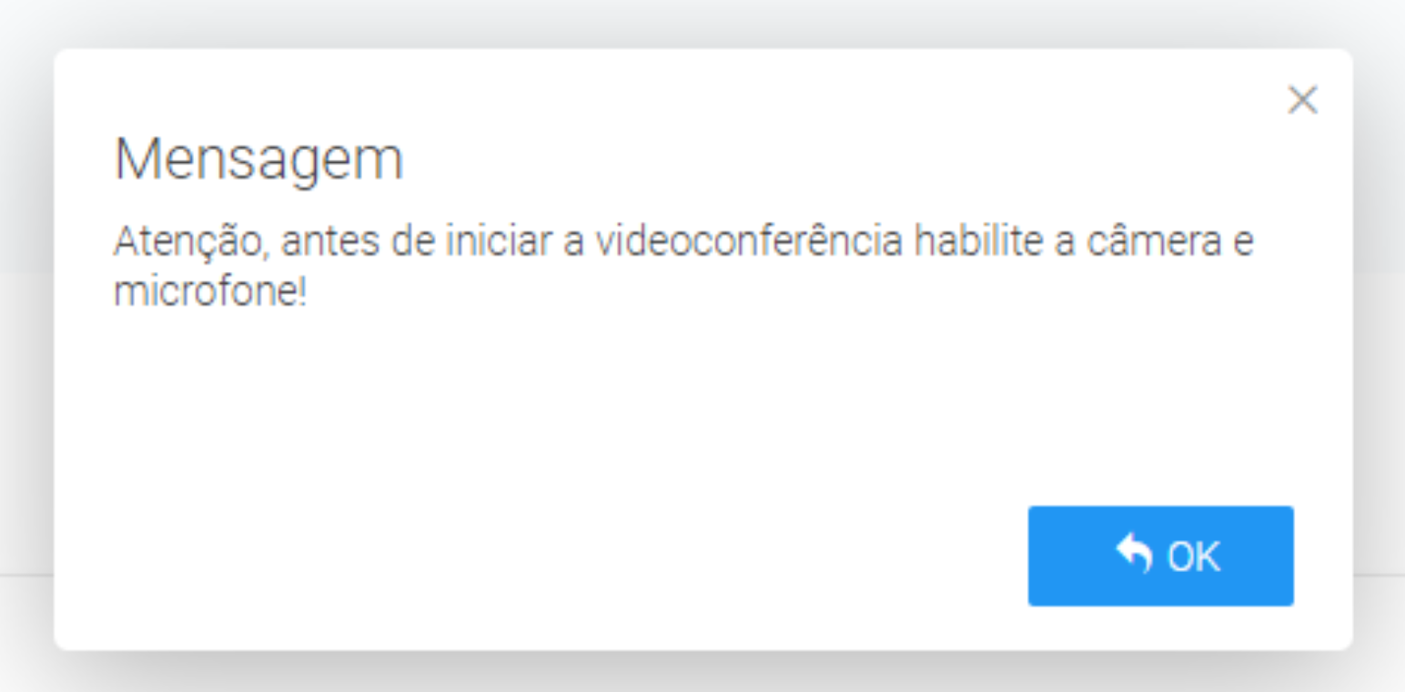 Quando o acesso é bloqueado, o sistema manda uma mensagem de erro avisando que a câmera e o microfone precisam estar habilitados para realizar a videoconferência. Este erro acontece quando o acesso não foi permitido ou estão desconectados.